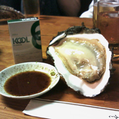 【7/1】というか昨日の続き Category:サムライファクトリーでの出来事 Date:2009年07月02日 お魚大好きですよ。順加です。既にtakanoriさんやくろまうすさんが書いてますし、今日は友だちと飲んでたら遅くなっちゃったので手短かに昨日の続きを書きますね。昨日の記事:【6/30】順加ひっぱりだこ牡蠣祭り、ということで、最初はオイスターバー的なところなのかな、って思っていたんですよ。まぁ、「魚がし福ちゃん」というぐらいなので、違うんだな、と行く前に気づきましたけどね。で、最初に飲み物を決めるじゃないですか。おばちゃん「飲み物どうする!?ビール?瓶ビールだと助かるんだけどな!瓶ビールでいいよね!生だったら後で出すから、ね!」まあ、そういうことなんですよ。「や、わたしたち牡蠣を食べに来たんですけd 」気づけばテーブルの上が刺身だらけに。牡蠣も食べましたよ!この大きさがおわかりいただけるだろうか?これを1人2個ずつね。もうそれだけでおなかいっぱいなのに。察してください。魚がどれも新鮮ですごく美味しかったので良かったです。それではまた。ぽよん[0回]PR