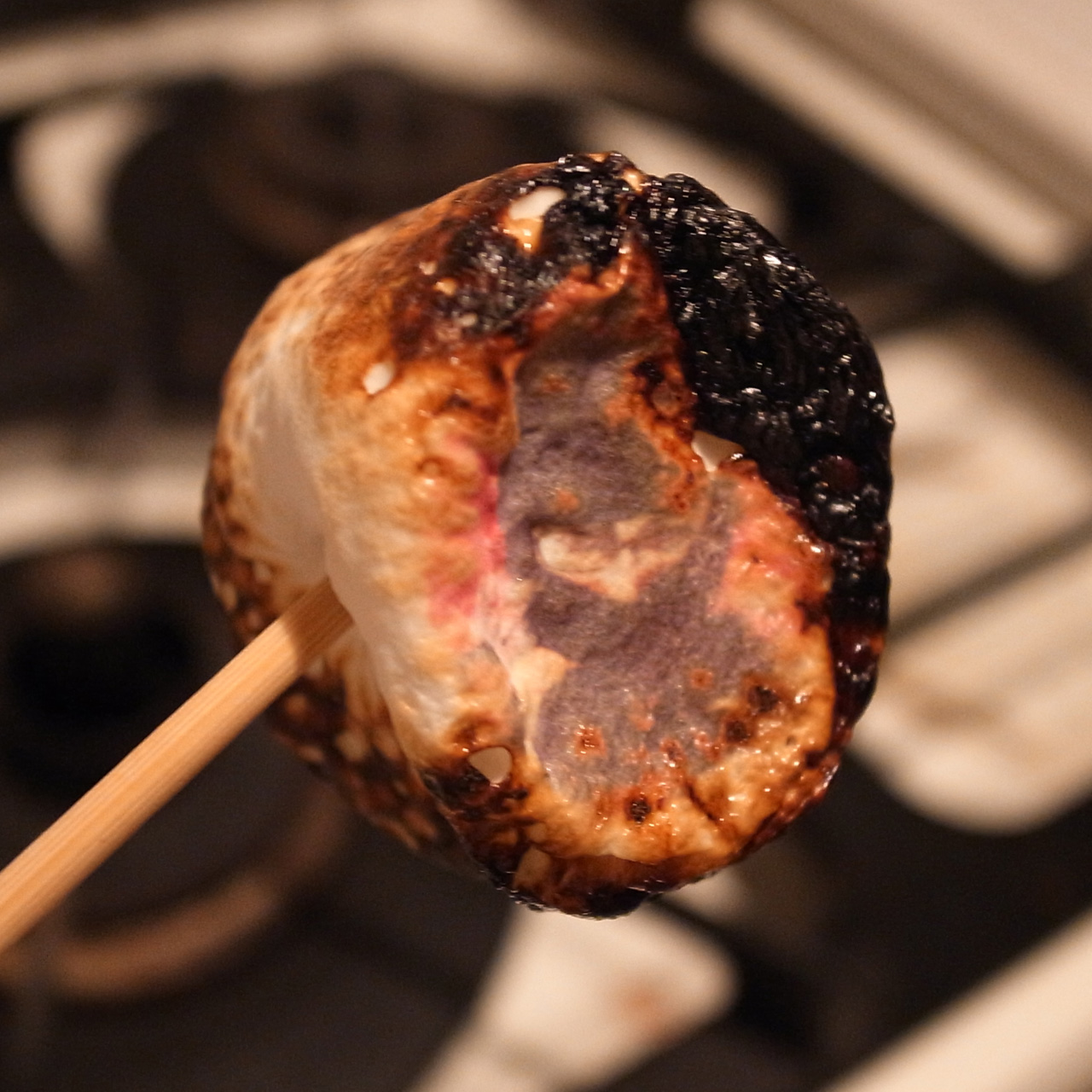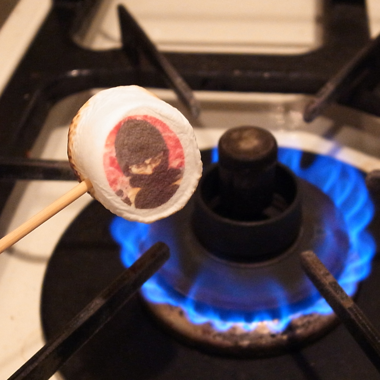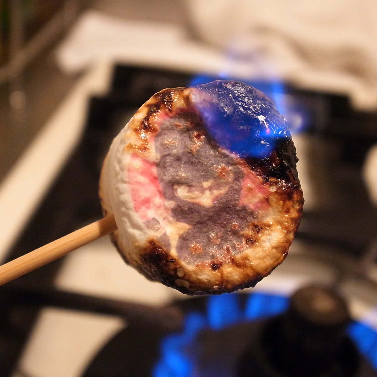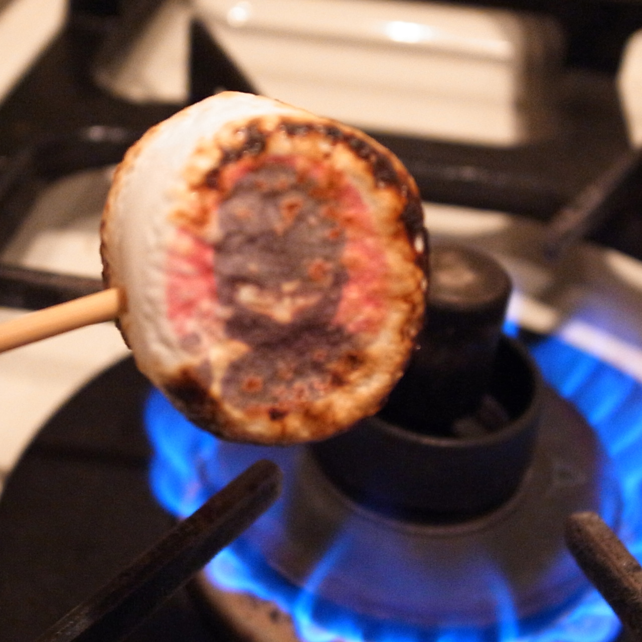 先日いただいた、ホワイトデーのお菓子ですが、マシュマロの食べ方でググってみたら、火で炙るのもおいしいよ!とのことでしたので、早速コンロで炙ってみました。