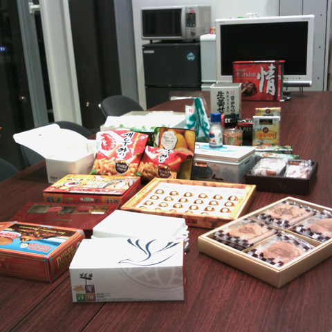 秋の菓子祭り【9/28】 Category:サムライファクトリーでの出来事 Date:2009年09月29日 昨日は寝ちゃったので朝更新だよ。順加です。シルバーウィーク明けのわが社のレクルームです。甘いもの好きには堪らないお菓子(お土産)の山、山。もうたべられにゃい、むにゃむにゃ、でした。「情」の存在感が高ポイント。それではまた。ぽよん[0回]PR