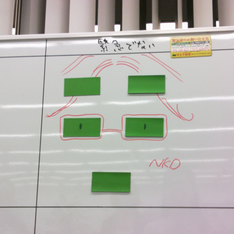 NKD【10/30】 Category:サムライファクトリーでの出来事 Date:2009年10月30日 ナイスピンク!ナイスピンク!順加です。内輪ネタで大変恐縮なのですが。くろまうすブログにも書かれてた、ホワイトボードの顔ですが、その後毎日進化を続けていまして(このホワイトボード、VCL島の横にあるんですー)NKD。あいつのことかー!ちょう似てる!ではまた。ぽよん[0回]PR